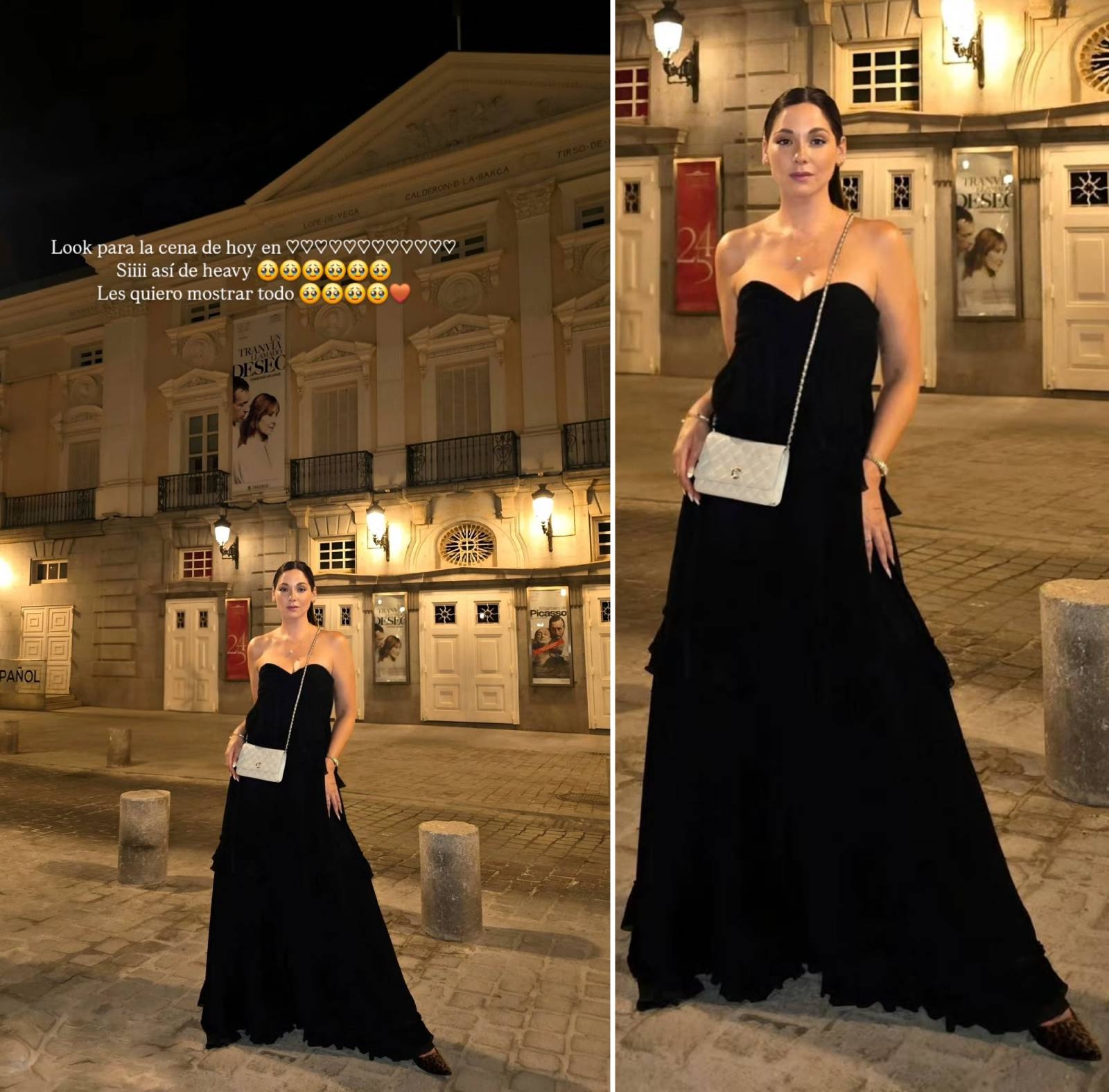 "De vestido largo y nerviosa": El romántico y elegante look de Kel Calderón para cenar en Madrid