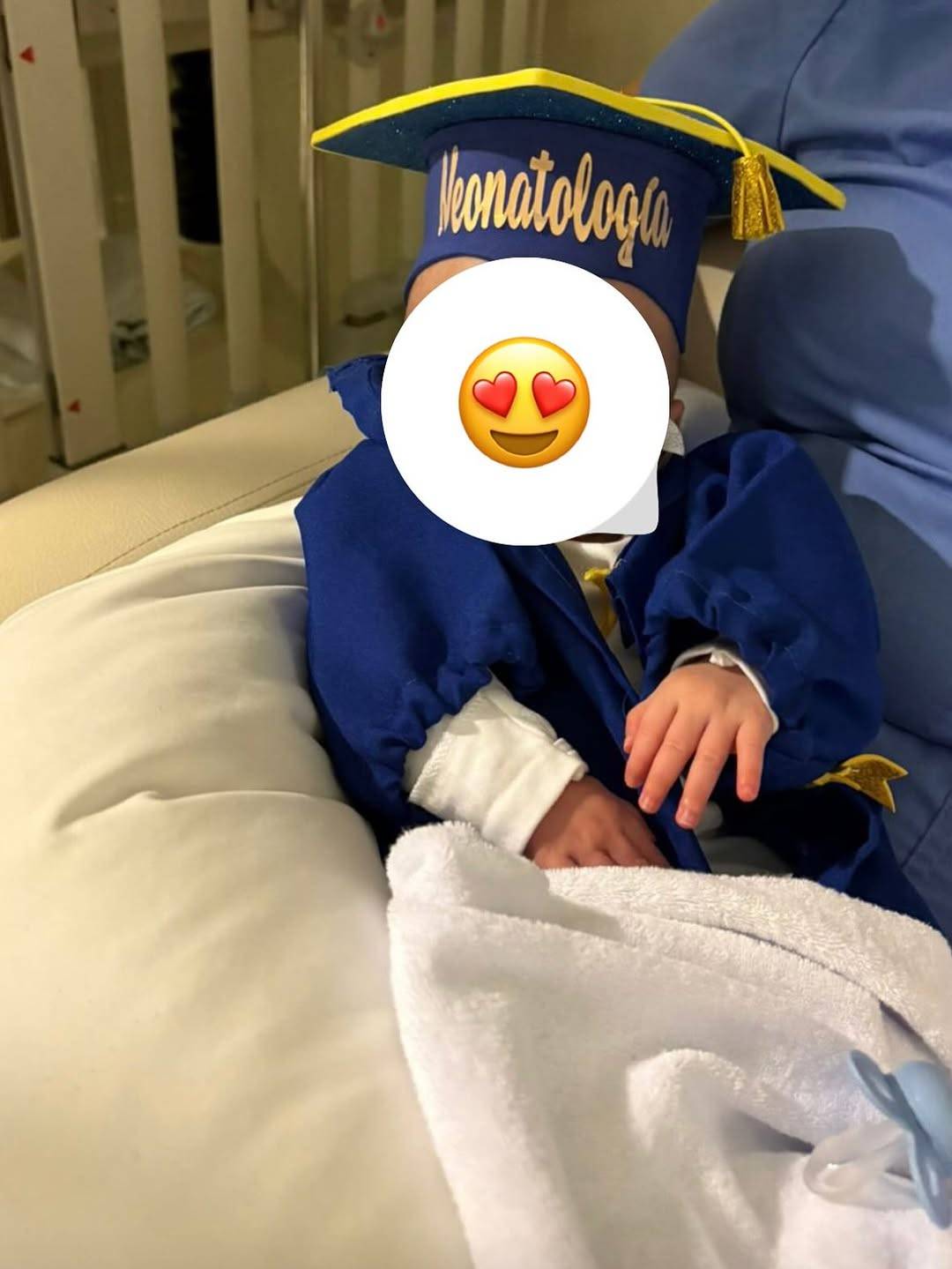 Su post vino acompañado con una foto del pequeño, quien se marchó del recinto médico vestido con una toga y un birrete con la palabra “neonatología” escrita, tal como si fuese una graduación.