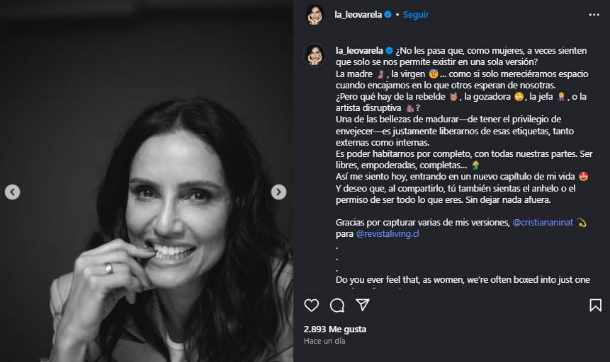 “¿No les pasa que, como mujeres, a veces sienten que solo se nos permite existir en una sola versión?”, escribió Varela en su cuenta de Instagram. “La madre, la virgen… como si solo mereciéramos espacio cuando encajamos en lo que otros esperan de nosotras”, expresó.