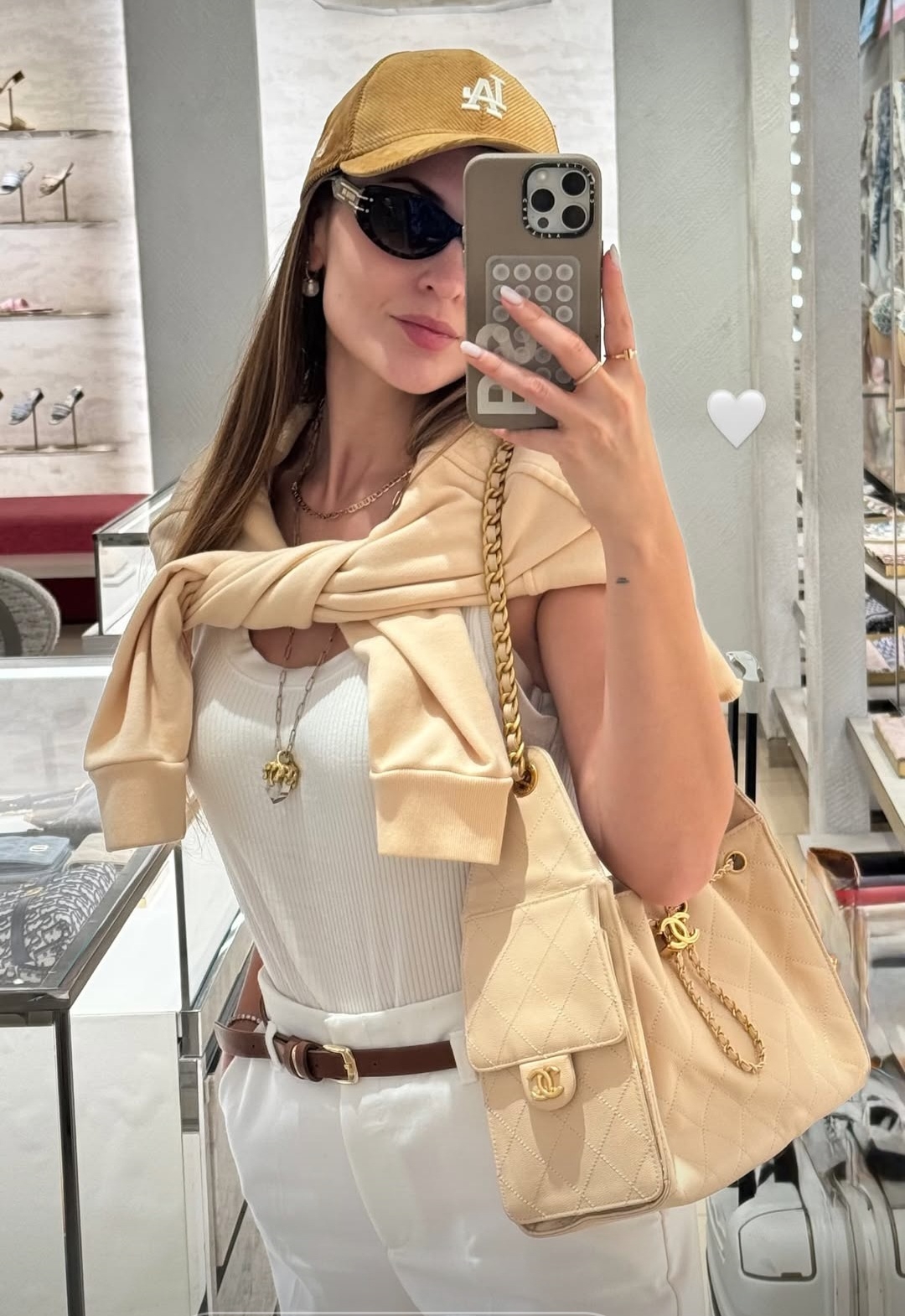 Belén Soto suma lujo y distinción a su look sporty chic con la cartera Chanel 25