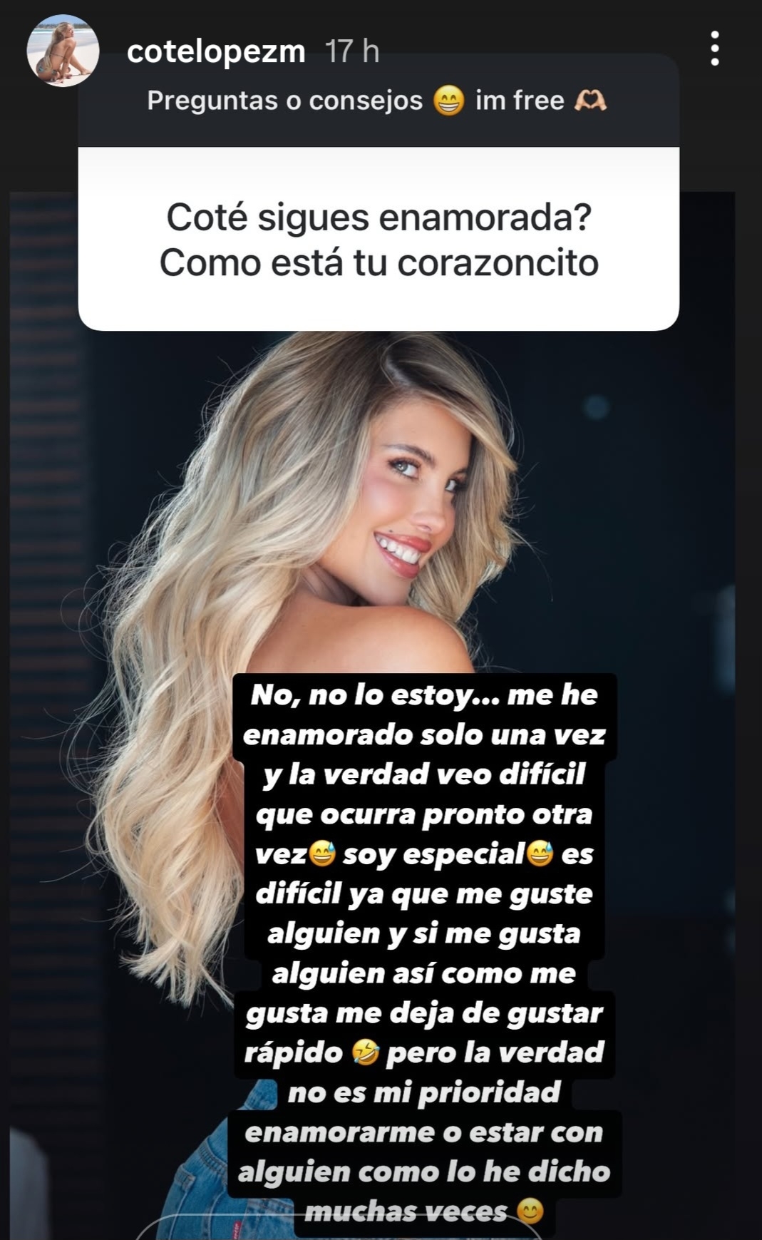En una nueva interacción con sus seguidores, Coté López escogió un grupo de preguntas que publicó en sus historias de Instagram. Y fue un comentario el que le produjo profundo malestar, por lo que en vez de obviarlo, prefirió responder de forma categórica.