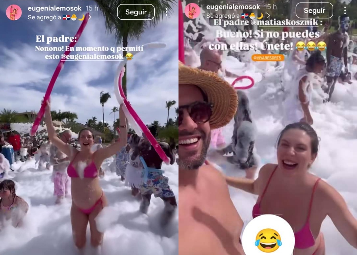 Luego, se ve a la actriz y modelo festejar con Matías Kosznik entre la espuma y otro texto que indicaba: “El padre: ‘Bueno, si no puedes con ellas, ¡únete!’”.