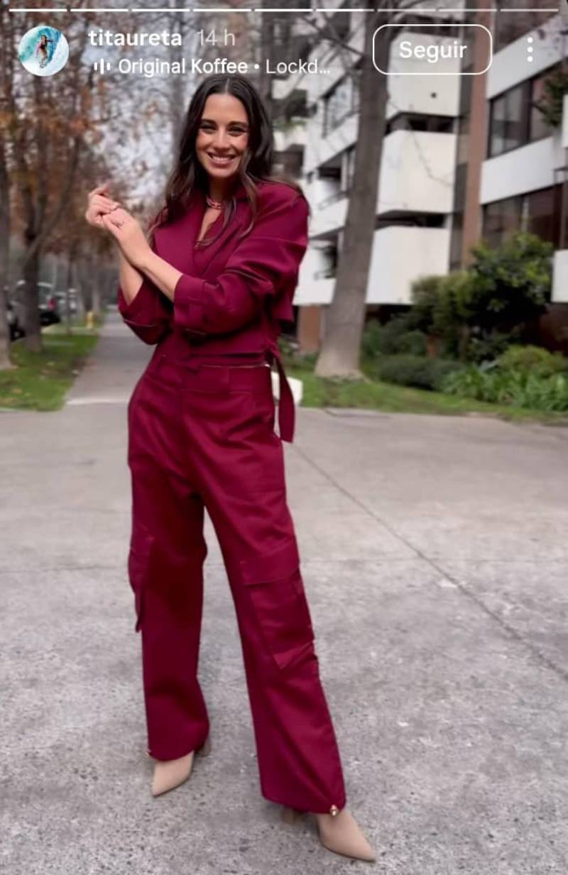 En una historia de Instagram, Isidora posteó un video en el que desfila en la pasarela urbana, llena de seguridad y alegría, un traje de dos piezas de un elegante tono rojo burdeos.