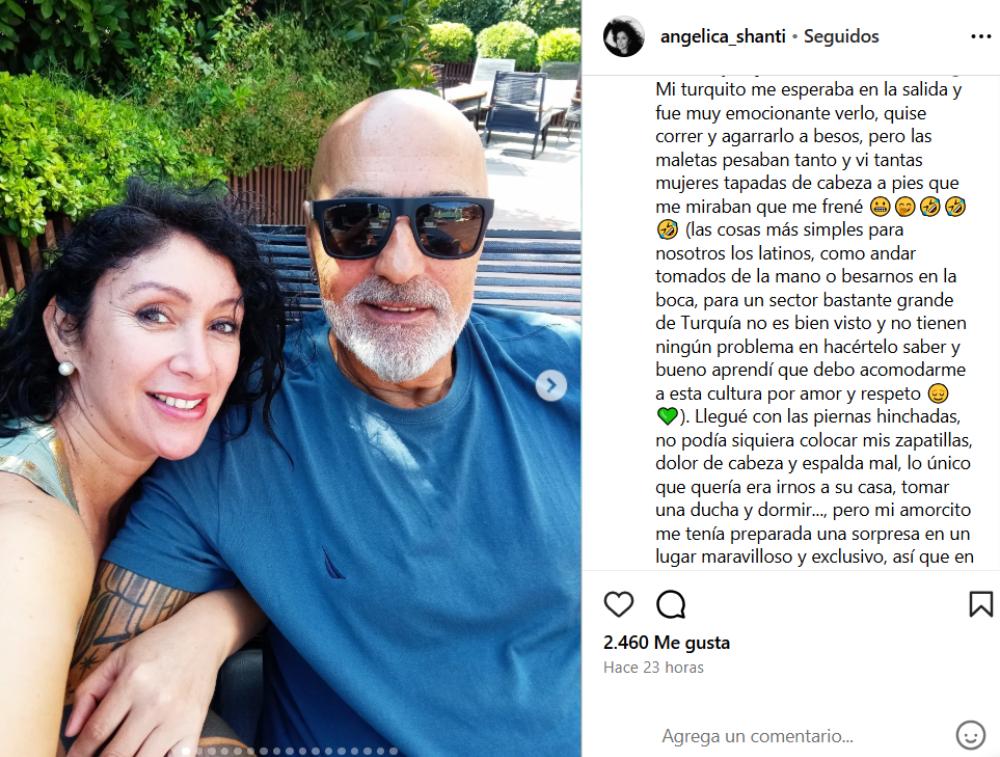 “Mi turquito me esperaba en la salida y fue muy emocionante verlo. Quise correr y agarrarlo a besos, pero las maletas pesaban tanto y vi tantas mujeres tapadas de cabeza a pies que me miraban, que me frené”, comienza contando en un post de Instagram.