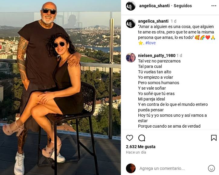 Angélica no se contiene a la hora de expresar lo enamorada que está, como lo declaró en una reciente publicación. "Amar a alguien es una cosa, que alguien te ame es otra, pero que te ame la misma persona que amas, lo es todo", escribió.