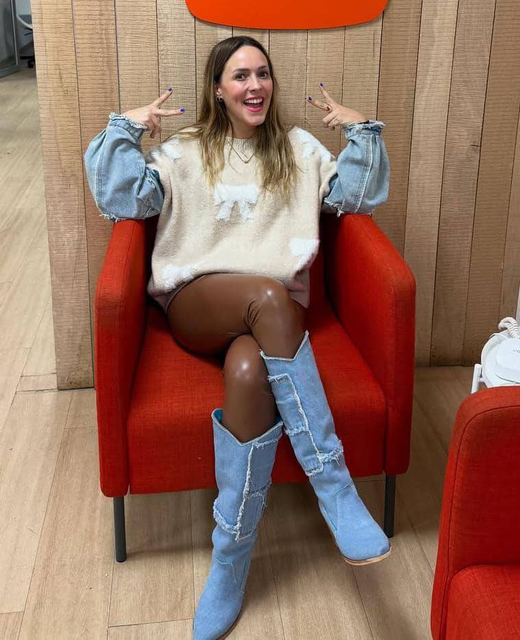 Complementado su estilo con audacia, la actriz lució unos leggings ajustados de cuerina en un tono marrón chocolate para resaltar su figura y unas botas largas, confeccionadas también en denim, como se aprecia en su cuenta de Instagram.