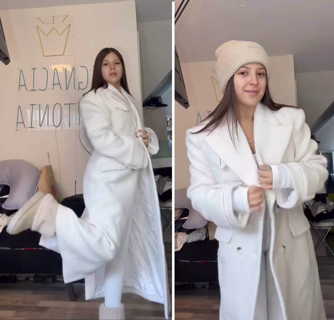 Ignacia complementó su atuendo con un elegante abrigo oversize de lana blanco. Igualmente, usó un gorro beanie y botas UGG de color crema para abrigarse del frío invernal y darle un toque casual y acogedor a su look.