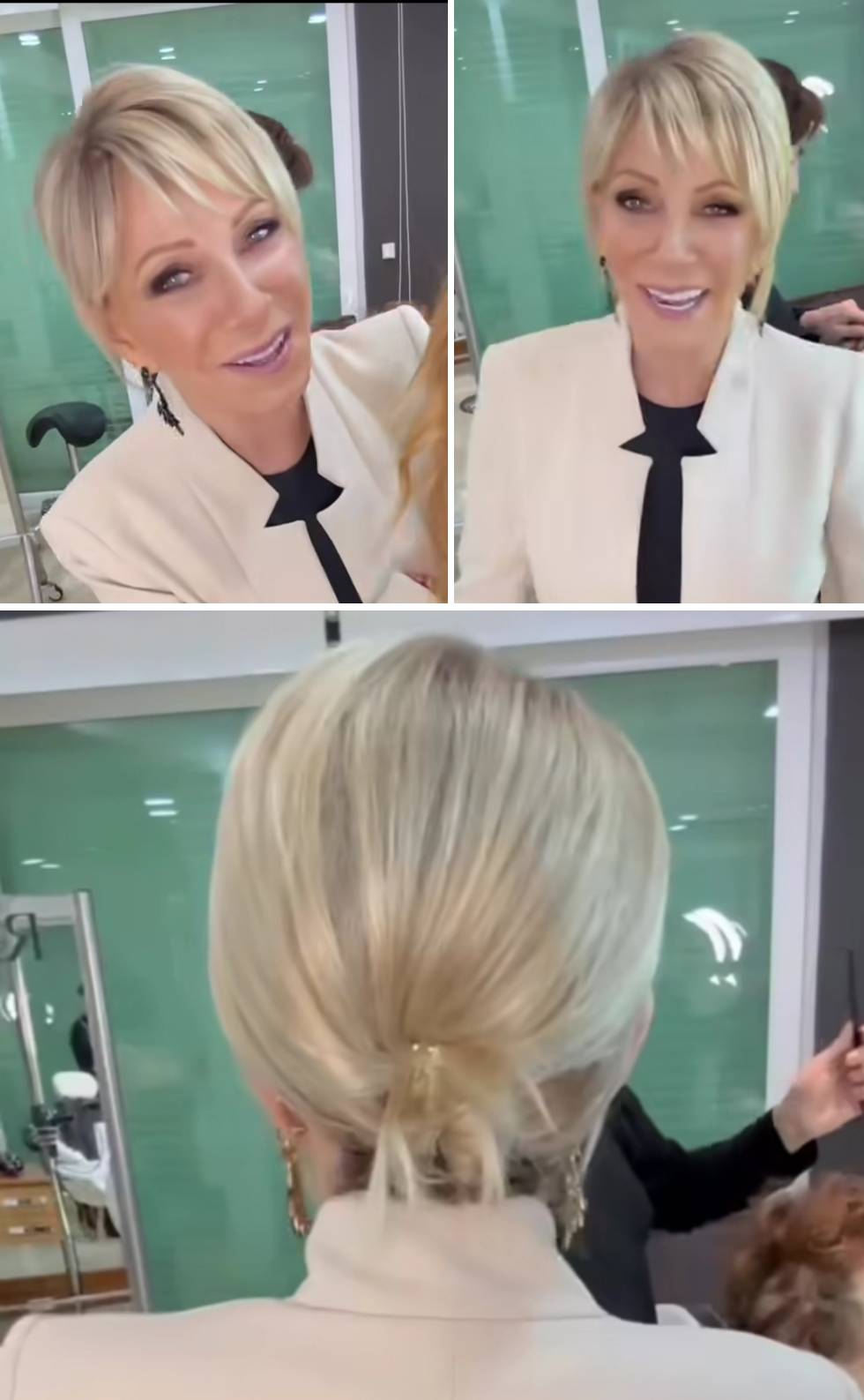 “Yo estoy lista, miren mi moño”, comentó muy alegre en el video, mientras ofrecía detalles de su look y giraba para enseñar el efecto logrado.