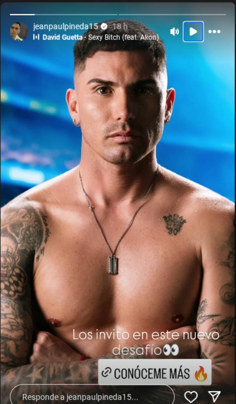 "Los invito a este nuevo desafío", escribió Pineda en una historia de Instagram, en la que posa sin polera y con la canción "Sexy Bitch" de David Guetta de fondo. La imagen pertenece a su primera sesión fotográfica dentro de la plataforma Arsmate.