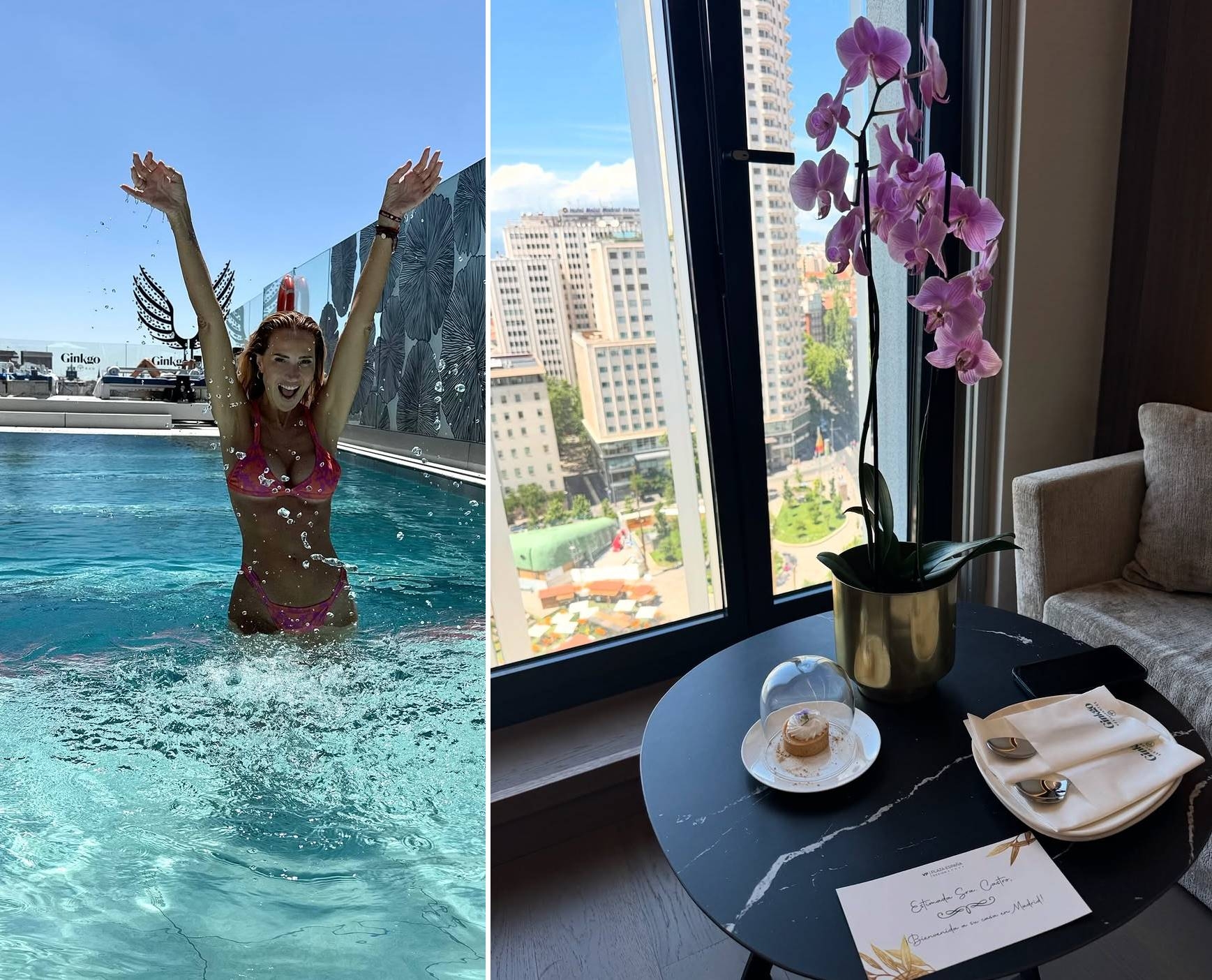 "Días intensos, corazón lleno. En medio de una agenda muy movida en Madrid, encontrar un lugar como este ha sido un verdadero regalo", escribió al mostrar su habitación, con una envidiable vista a la ciudad y una piscina en la azotea, donde aprovechó para lucir un bikini soñado.