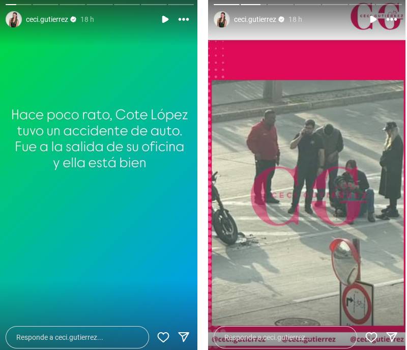 En las imágenes que compartió Gutiérrez en su Instagram, Coté López está de pie y mira cómo los servicios de emergencias auxilian al motorista. La periodista aseguró que la modelo nacional salió ilesa del incidente, lo que también corroboró Pamela Díaz.
