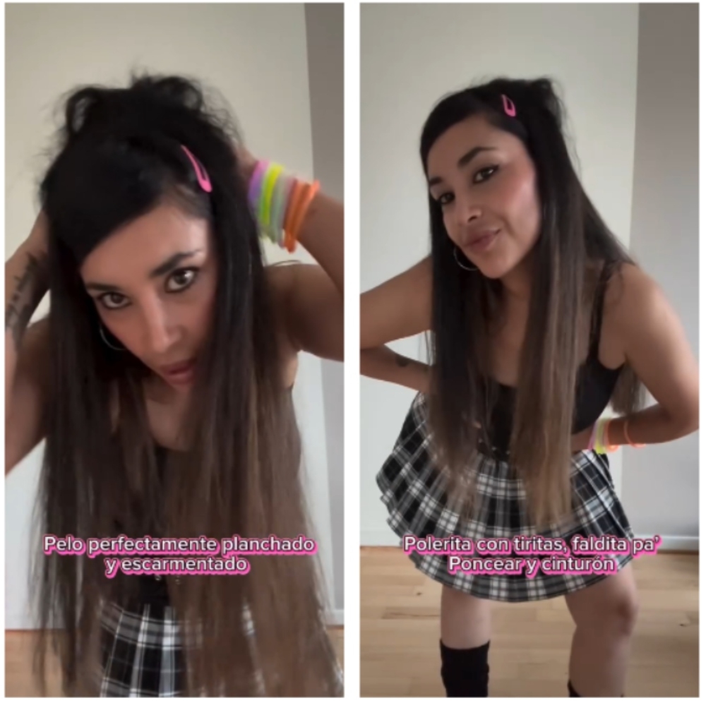 “Lo más importante, las pulseras. El que más tiene, más ha ponceado. Las tillas de SK8 (skate) y las polainas”, recordó la influencer y finalizó el video con un C-Walk.