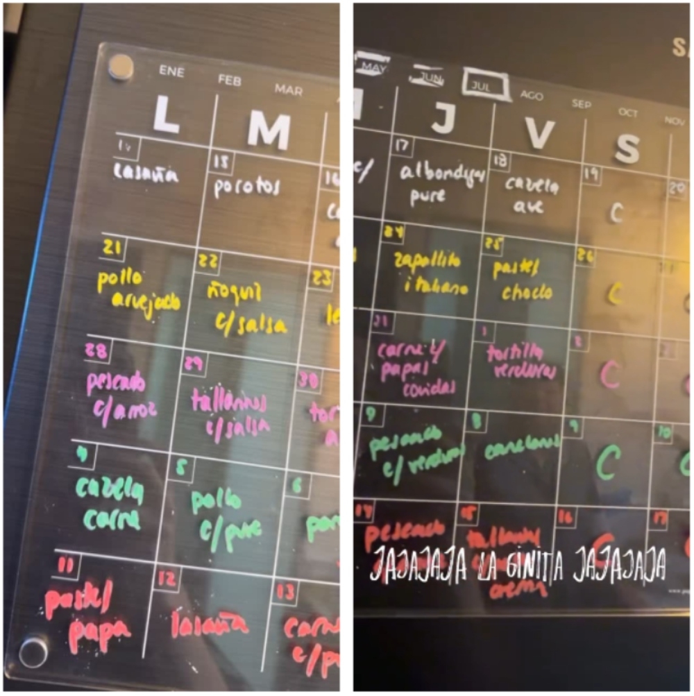 Posteriormente, indicó que pasa el menú mensual a un calendario donde coloca la comida que debe realizar cada día, con el fin de variar su alimentación. Además, mencionó que el fin de semana lo deja para “congelados”.