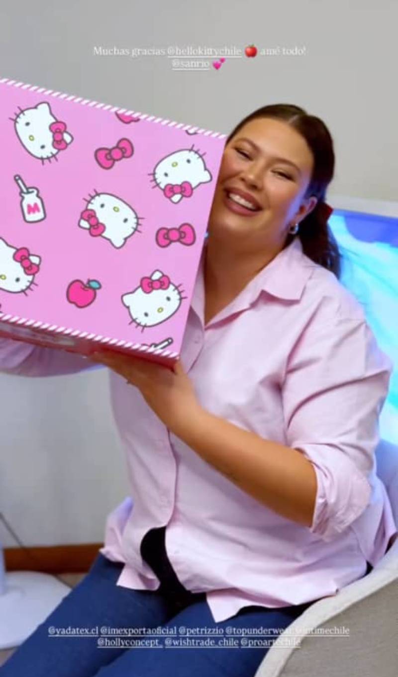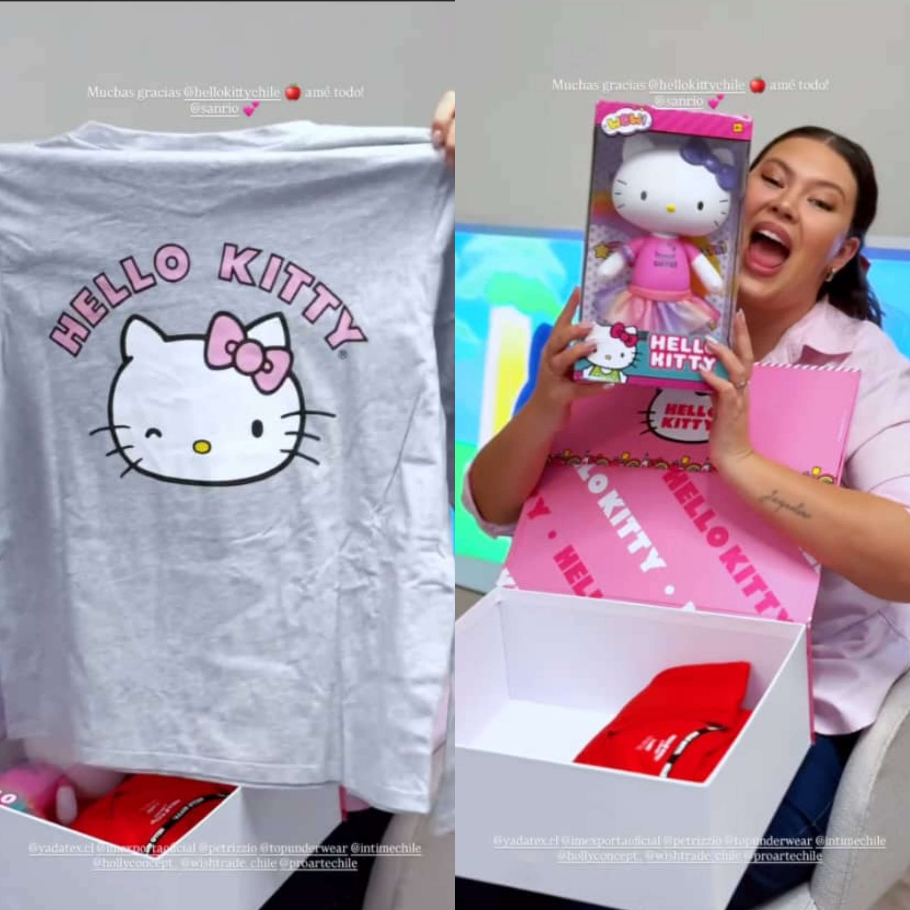 Además, la chica reality agregó a su colección un vibrante polerón rojo, labiales, cremas para manos, ropa interior, un cuaderno holográfico y una figura más pequeña a la que “le brillan los ojos”, todos con diseños alusivos a Hello Kitty.