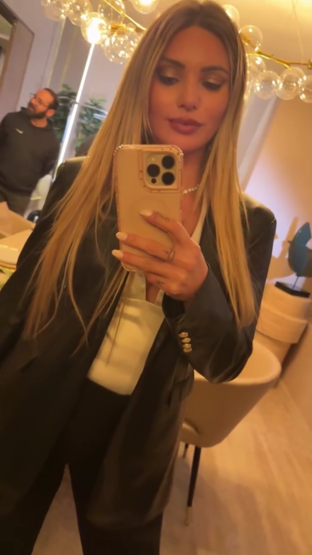 La animadora reapareció unas horas después con su rostro impecablemente maquillado y luminoso, y vestida con outfit casual pero elegante. Lució una chaqueta oscura y un top escotado que combinó con diferentes accesorios, como collares y anillos.