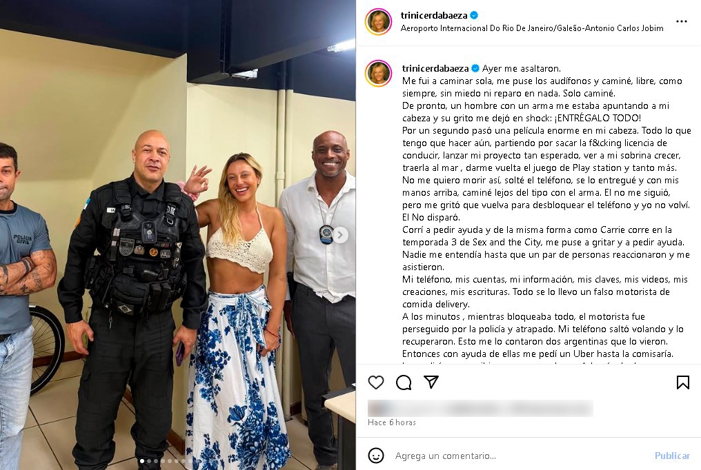 Trini Cerda revela que fue víctima de violento asalto en Brasil