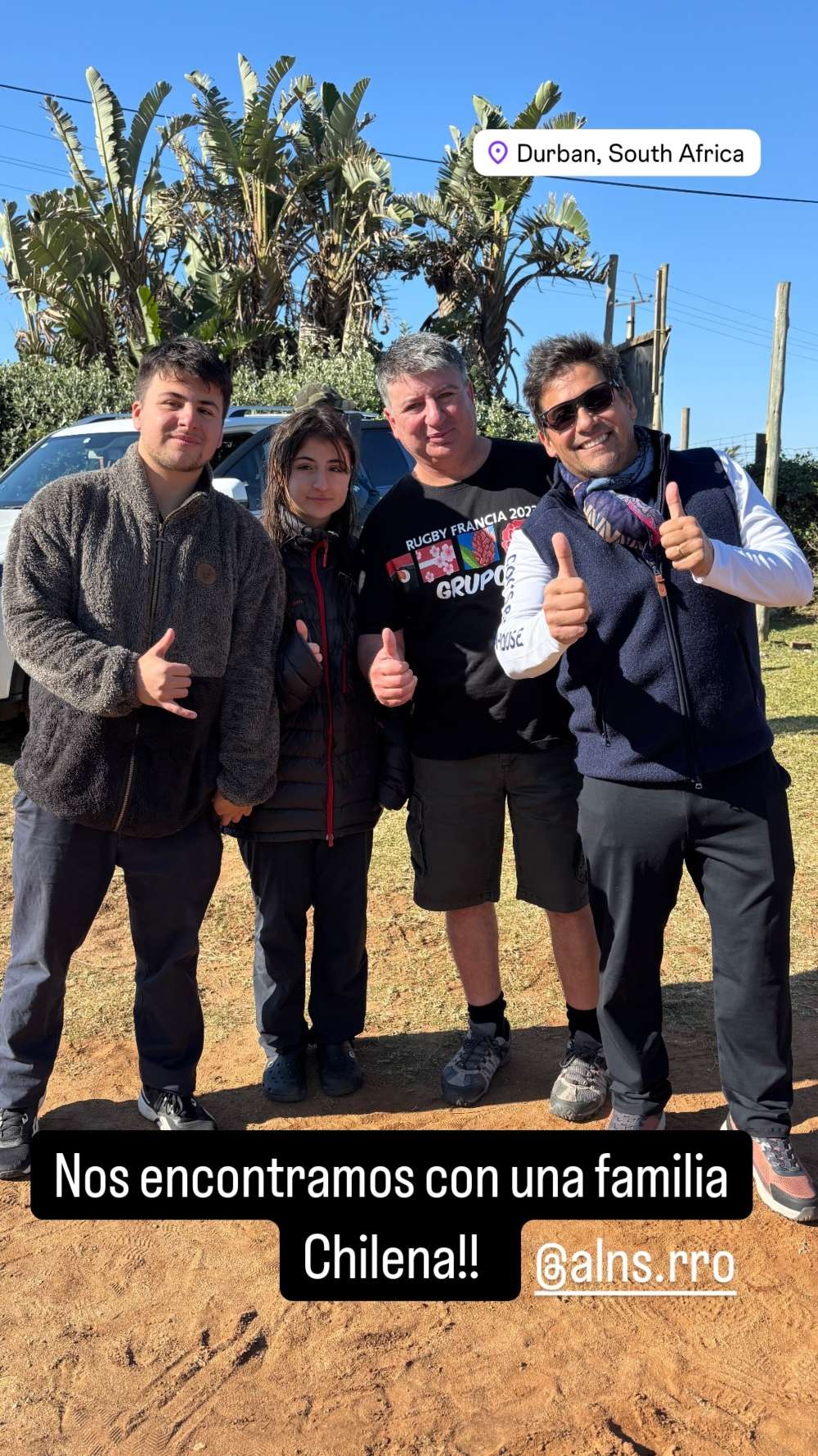 A pesar que inicialmente no pudo conversar con ningún coterráneo, fue después de establecerse que logró realizar esta hazaña: en sus historias de Instagram documentó el encuentro con una familia chilena en Sudáfrica.