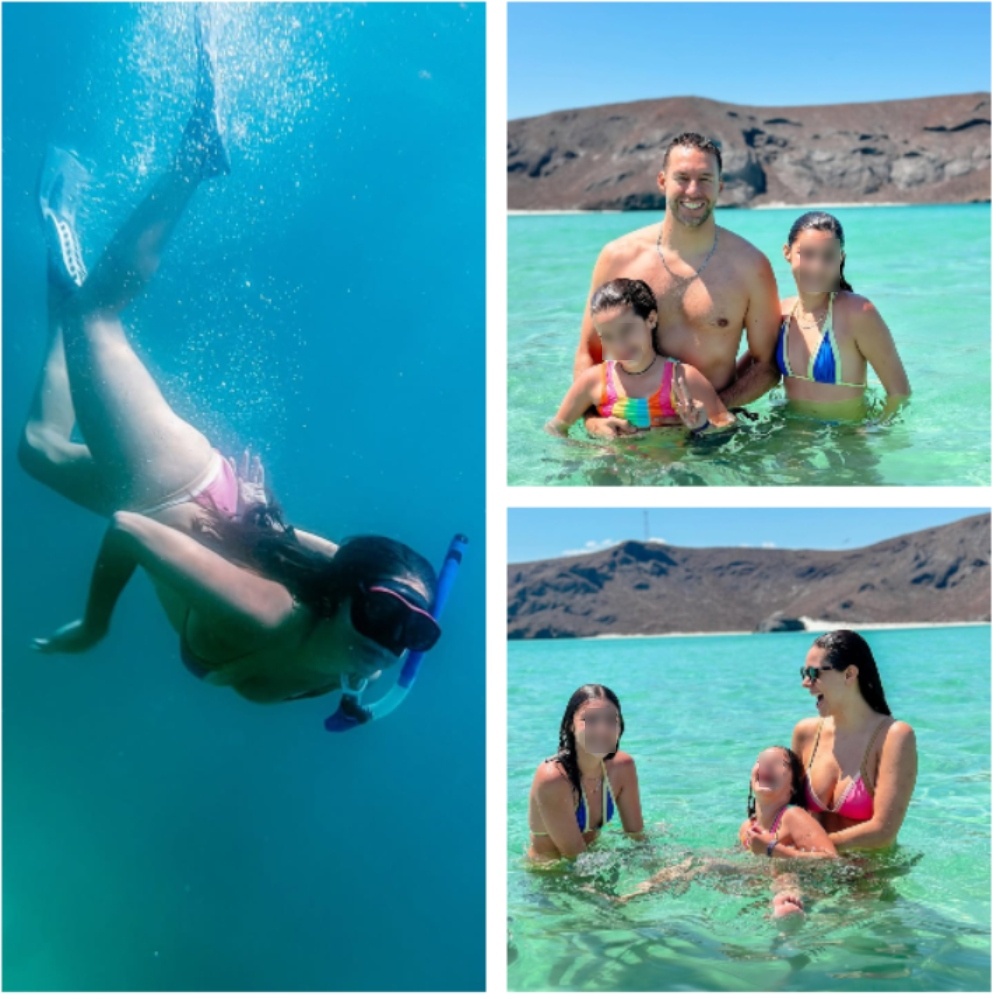 Acompañada de su esposo Javier Urzúa y sus hijas Maite y Colomba, Camila vivió una intensa jornada de snorkel, paseos en lancha y playas cerca de la ciudad de La Paz, en Baja California Sur.