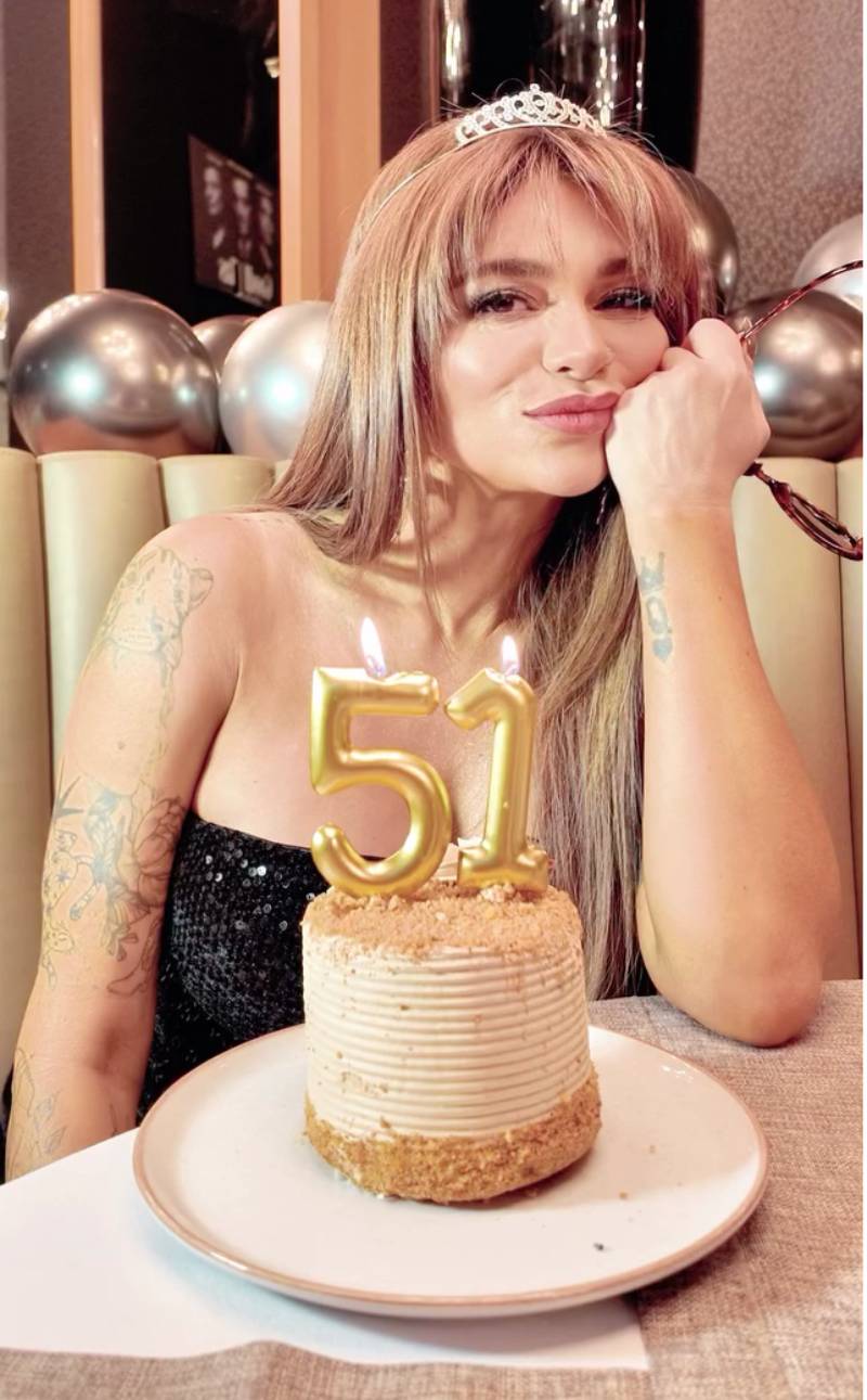 Antonella Ríos arribó a sus 51 años y, para celebrarlo, compartió un video en el que sopla las velas de un pastel adornado con los números de su edad y frente a una decoración de globos metalizados.