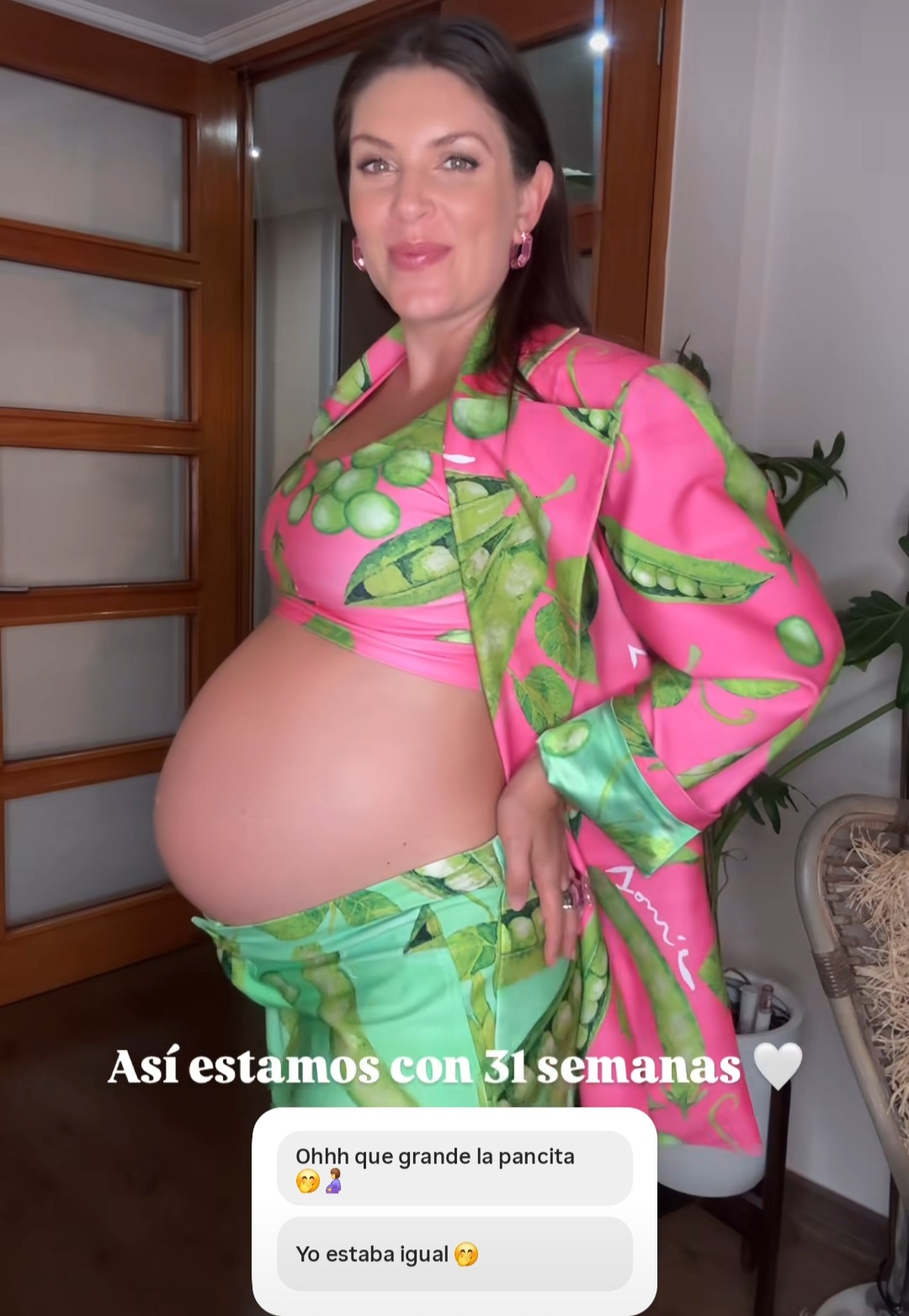 Eugenia Lemos muestra con estilo cómo luce a sus 31 semanas de gestación: Mezcla rosa y verde en un estampado