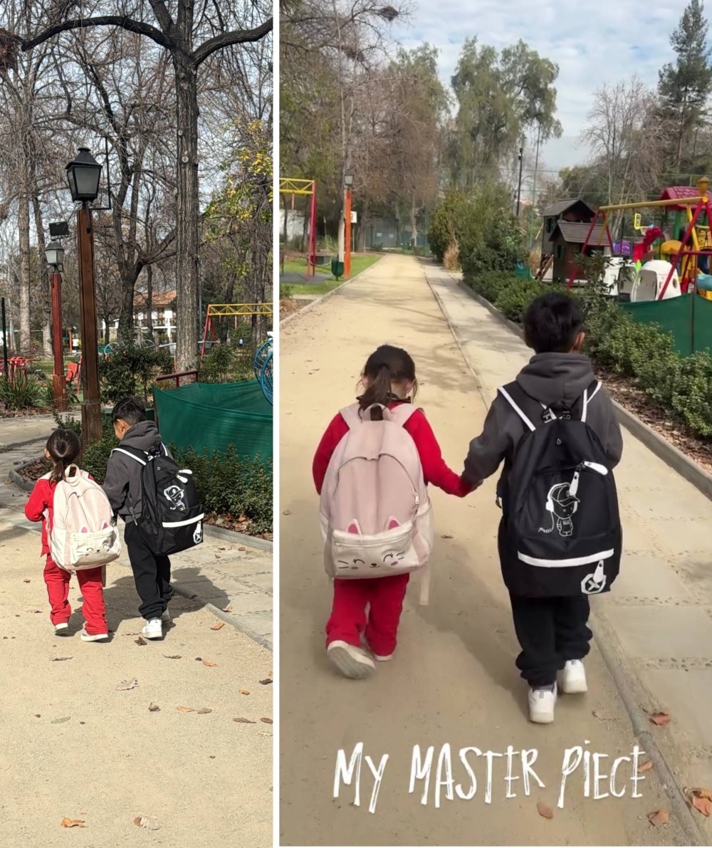 En la postal que publicó en sus historias de Instagram, Lisandra muestra a los pequeños Noah y Leiah tomados de la mano mientras se observa a su lado un parque infantil. “My masterpiece” (Mi obraaa maestra), escribió la modelo en la foto.