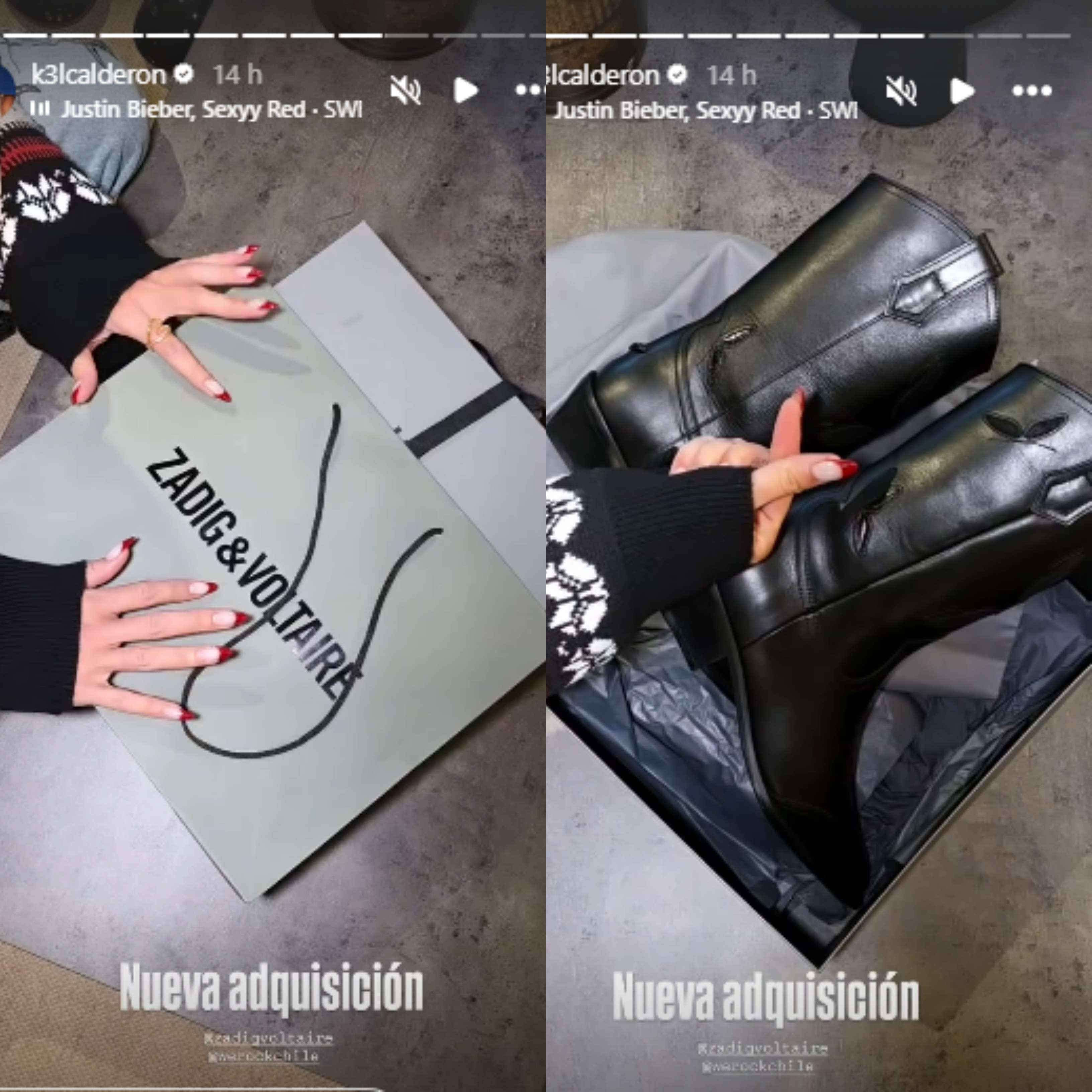 En una historia de Instagram, Kel Calderón muestra el momento en el que saca de su caja su "nueva adquisición", unas botas vaqueras negras de la marca Zadig & Voltaire, que tienen un valor de 698 dólares.
