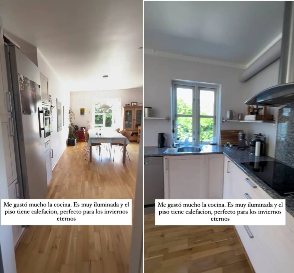 Posteriormente, ingresó al sitio y paseó por la cocina y el comedor. “Me gustó mucho la cocina. Está muy iluminada y el piso tiene calefacción, perfecto para los inviernos eternos”, escribió en la imagen.