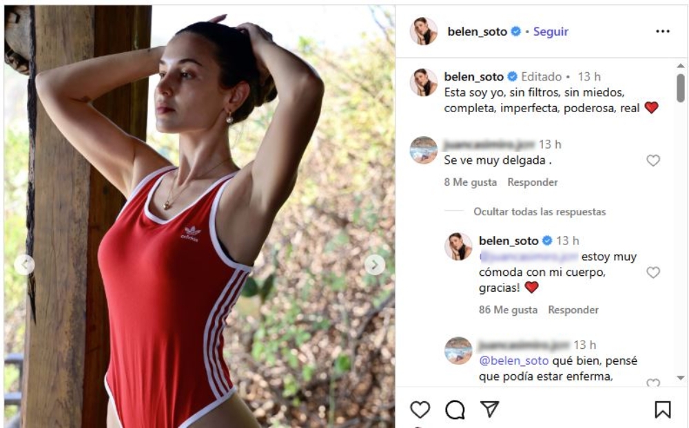 La respuesta de Belén Soto a usuario que opinó sobre su cuerpo