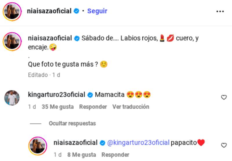 La publicación recibió cientos de halagos, pero el más resaltante fue el de su pololo. Arturo Vidal le escribió un cariñoso “Mamacita”, seguido de emojis con ojos de corazones para demostrar lo enamorado que está de su pareja. Sonia, por su parte, le respondió con un coqueto “papacito” y un corazón.