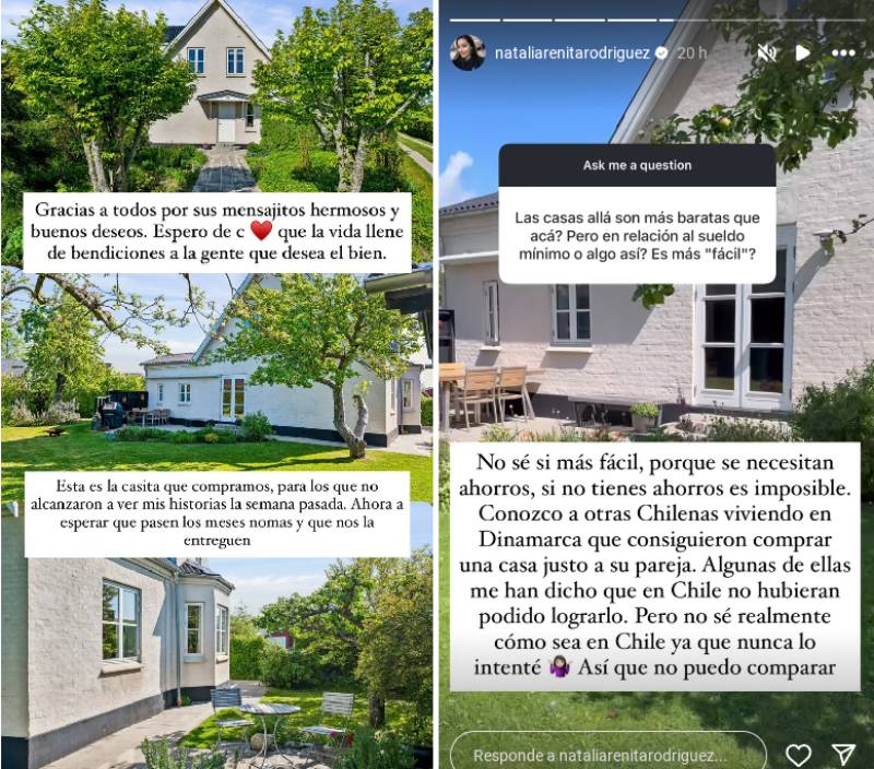 Ante la pregunta de sus seguidores si es más fácil comprar una casa en Dinamarca o en Chile, Arenita respondió con sinceridad: “No sé si más fácil, porque se necesitan ahorros (…) Conozco a otras chilenas viviendo en Dinamarca que consiguieron comprar una casa junto a su pareja. Algunas de ellas me han dicho que en Chile no hubieran podido lograrlo”.