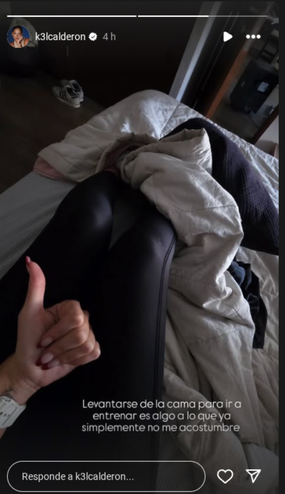 En sus historias de Instagram, la modelo de 34 años publicó una foto desde su habitación donde reveló: “Levantarse de la cama para ir a entrenar es algo a lo que ya, simplemente, no me acostumbré”.