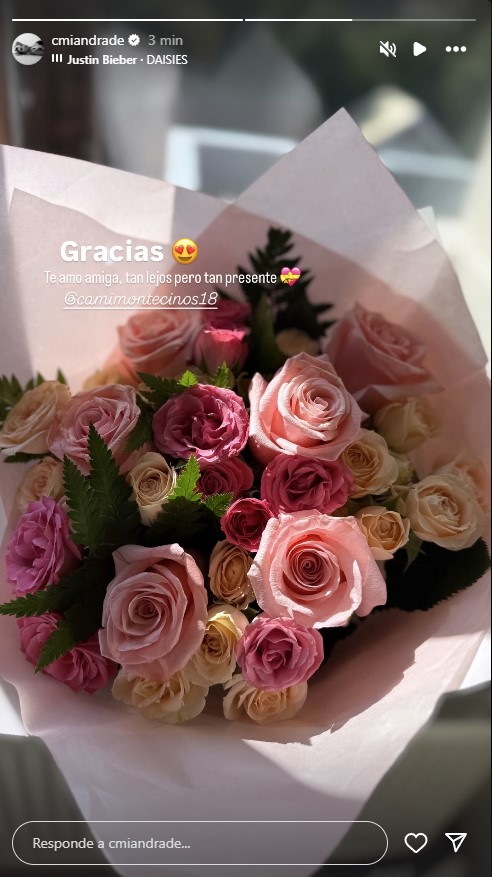 Resulta que una amiga le mandó un hermoso ramo de flores y ella se mostró muy agradecida: "Te amo amiga, tan lejos pero tan presente".