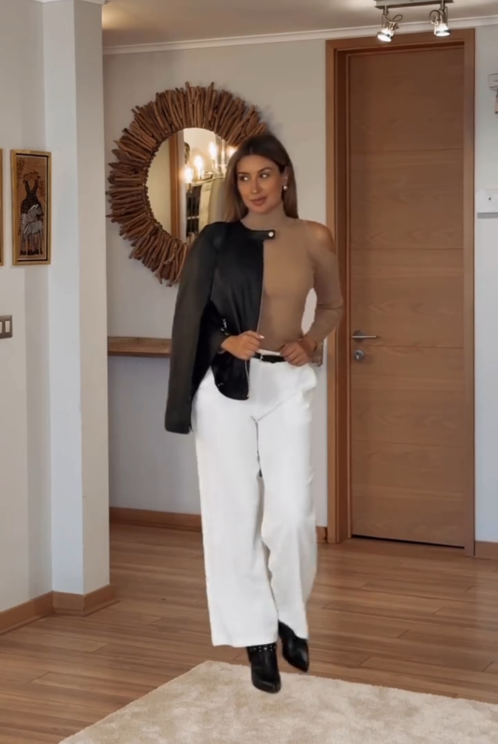 “Amo mis outfits. Cómodos, elegantes y versátiles, lo mejor si buscas algo para ir a la oficina o para algo más casual, las posibilidades son infinitas si eliges los complementos correctos”, escribió en la descripción del post.