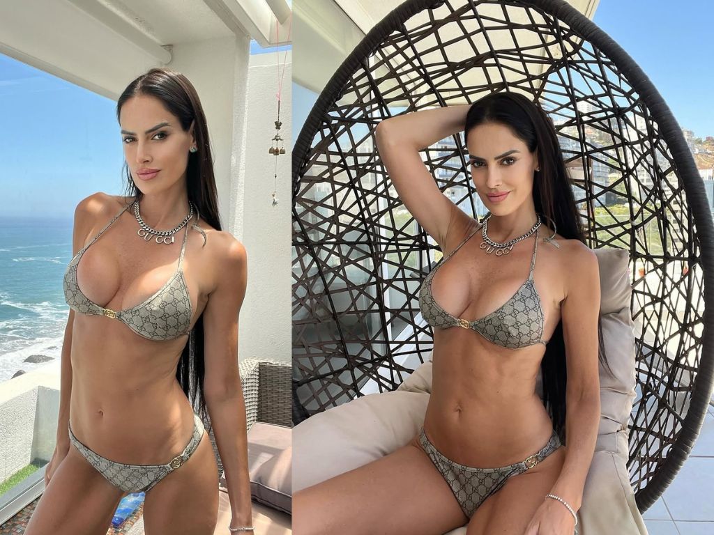 Para un look de verano, Adriana Barrientos combinó el confort de un bikini de diseñador con un accesorio de lujo. Bajo una estética de glamour, la panelista posó una pieza de la firma de modas Gucci.