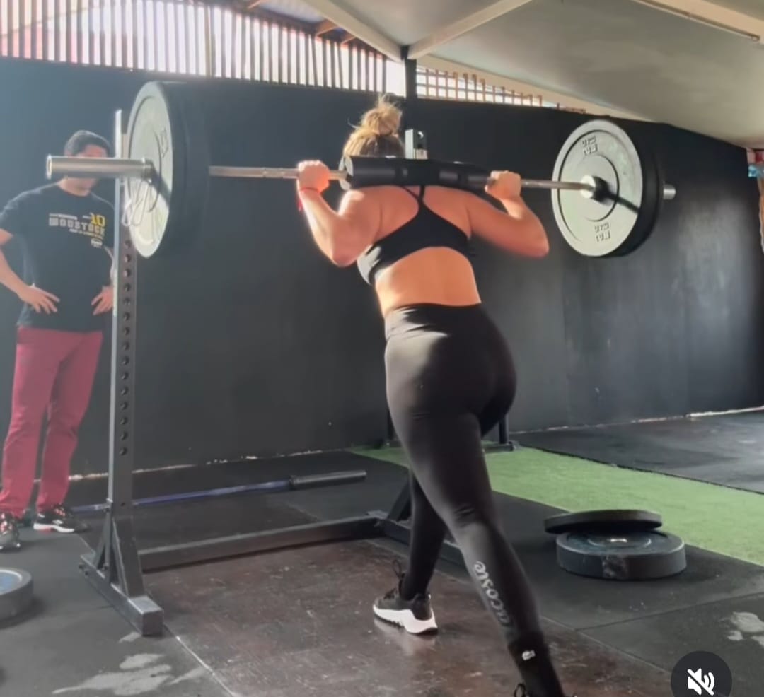 “No son ganas… es disciplina”, escribió la chica reality en la publicación, acompañada de su entrenador, mientras iniciaba una serie de levantamiento de pesas.