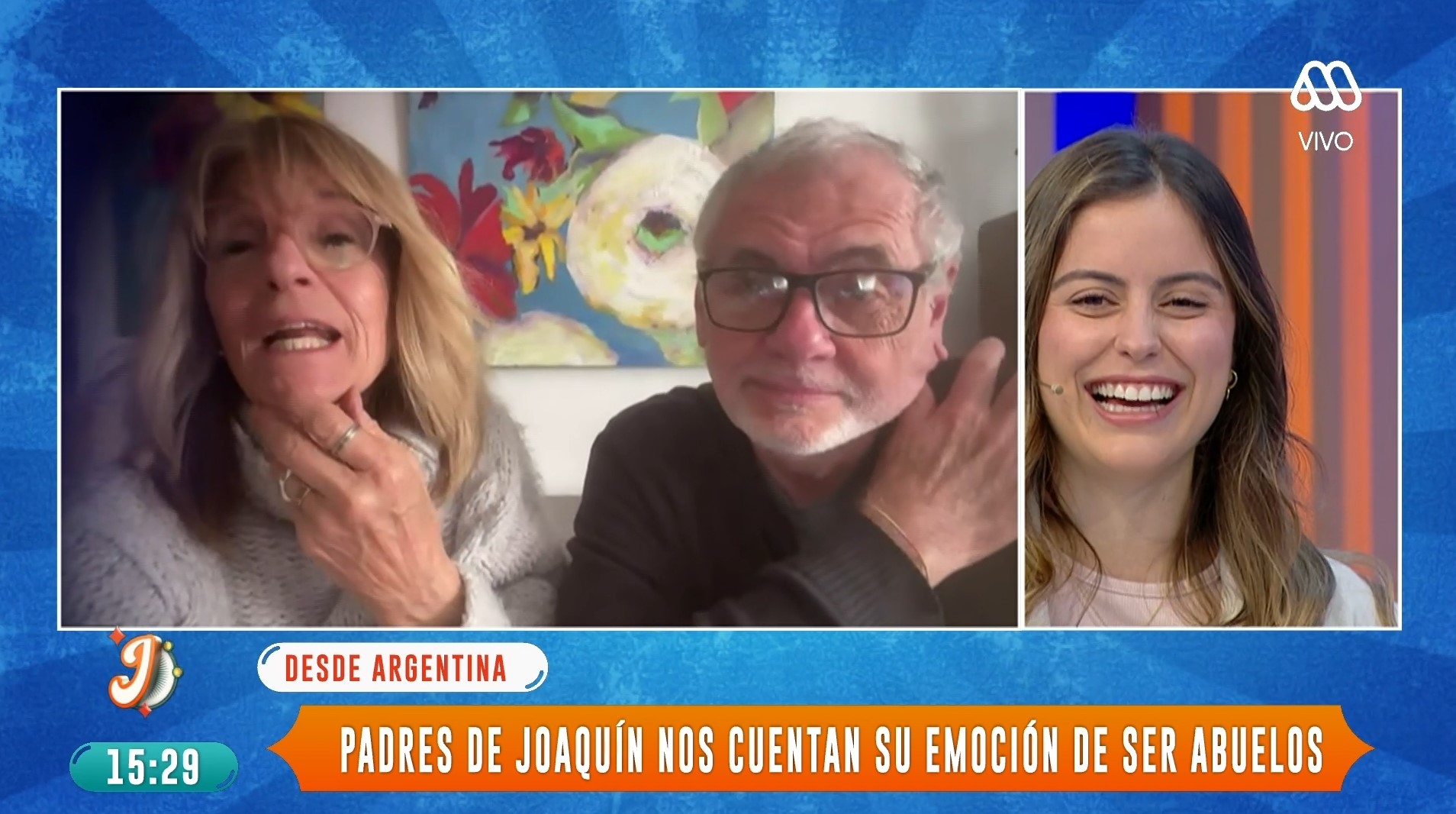 Mientras conversaban sobre los posibles nombres para su primer bebé, el conductor y su polola fueron sorprendidos con un contacto en directo con los padres del argentino.