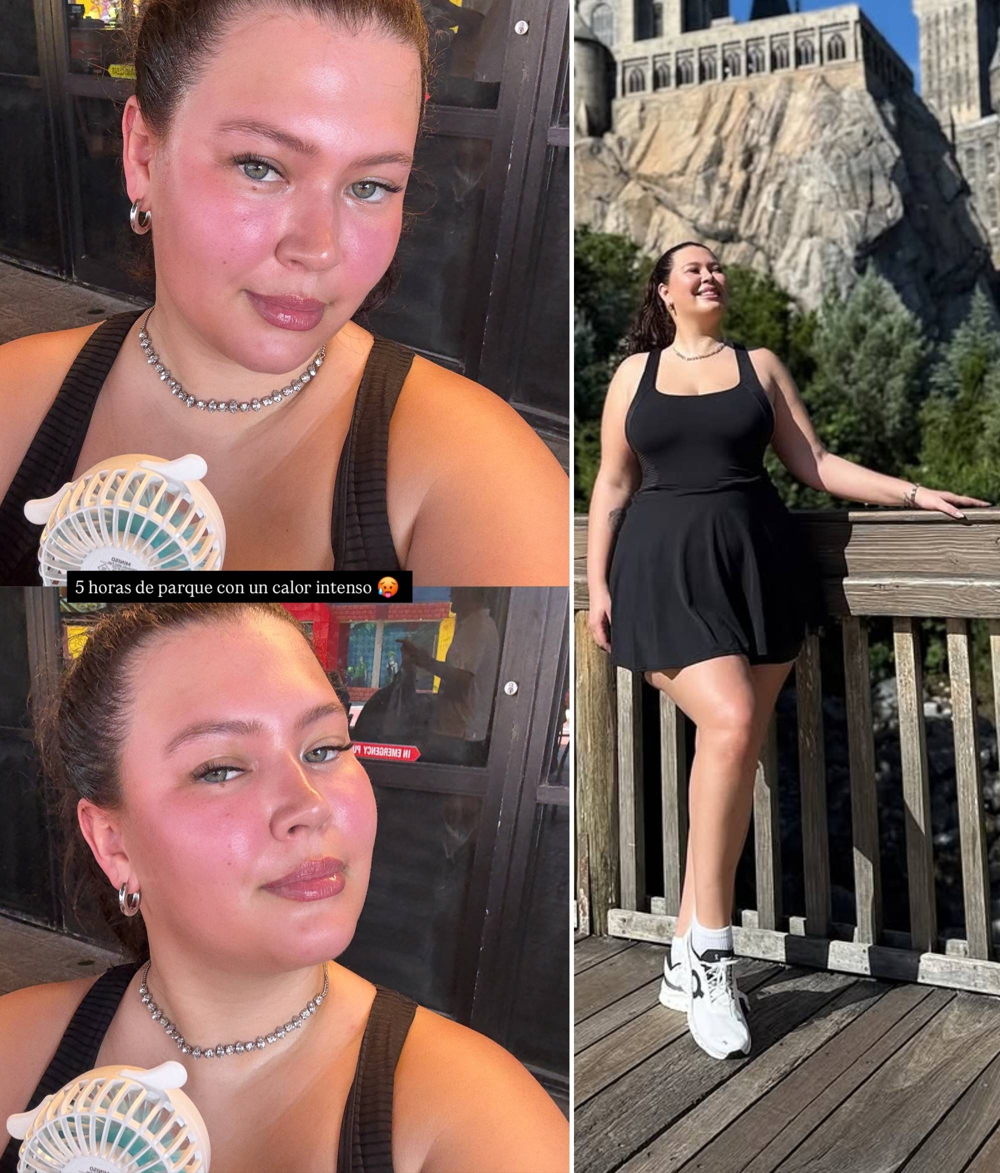 La influencer escogió el color negro para llevar este modelo Victoria's Secret de mangas sisa y escote redondo pronunciado, que incorpora una falda short para mayor libertad de movimientos.
