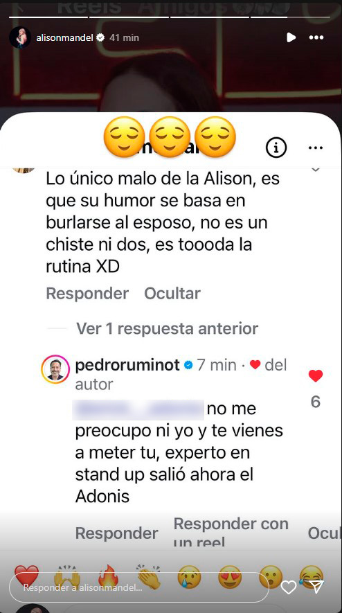 A través de sus redes sociales, Alison Mandel publicó un gracioso intercambio entre Pedro Ruminot y un seguidor que la criticó.