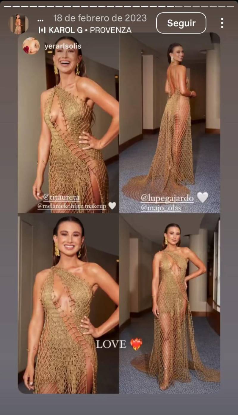En el podcast “Dale Color” de Eugenia Lemos, Ureta relató que Lupe Gajardo y Majo Olas restauraron la red de pesca que sacó del agua y la transformaron en un diseño inolvidable, lleno de transparencias y cristales Swarovski.