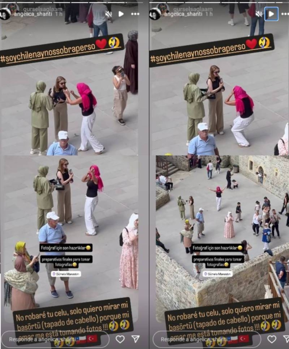 “No robaré tu celu, solo quiero mirar mi basortu (tocado de cabello) porque mi amor me está tomando fotos”, escribió entre risas en el post en el que agregó la etiqueta: "Soy chilena y nos sobra personalidad". Al final del video, se ve a Angélica sonriente posando para su galán turco, que la enfocaba desde la altura.