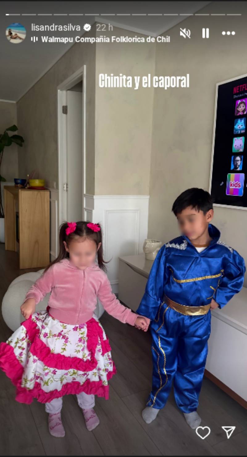 En otro post, Lisandra Silva compartió una tierna foto en la que Noah luce un traje azul de caporal y, como todo un caballero, sostiene la mano de su hermana Leiah, quien lleva una falda típica con estampado de flores.