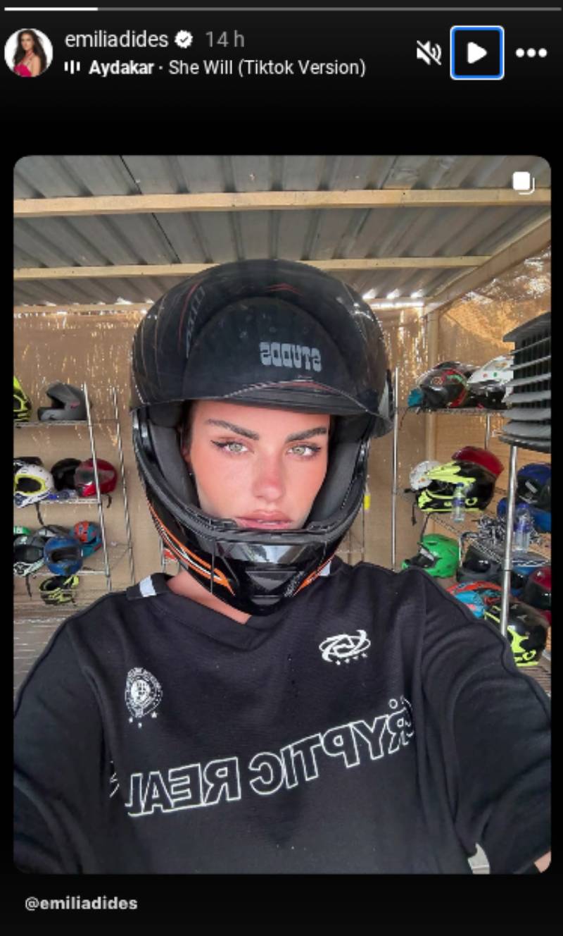 En Instagram, Dides compartió varias postales de su paseo, en algunas está rodeada de dunas y en otra luce un casco protector. Su post estuvo acompañado de un registro en el que la artista conduce un cuatrimoto por el desierto de Dubái.