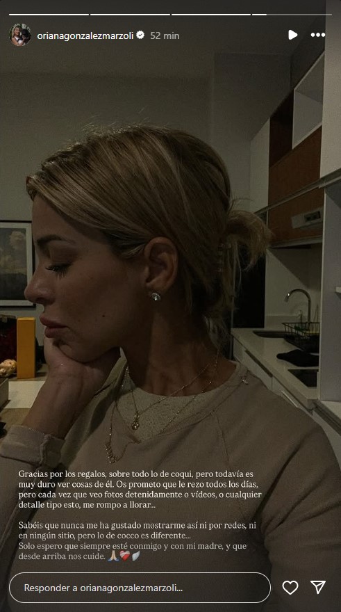 "Gracias por los regalos, sobre todo lo de Coqui, pero todavía es muy duro ver cosas de él. Les prometo que le rezo todos los días, pero cada vez que veo fotos detenidamente o videos, me rompo a llorar", expresó.