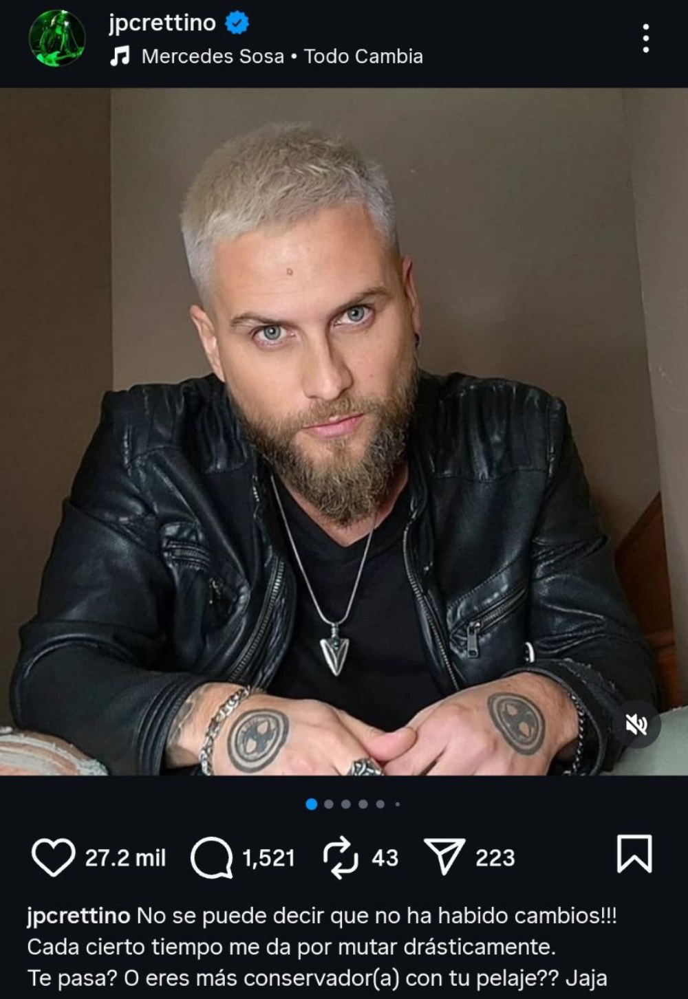 "No se puede decir que no ha habido cambios. Cada cierto tiempo me da por mutar drásticamente. ¿Te pasa o eres más conservador(a) con tu pelaje?”, escribió en la descripción de la publicación de Instagram.