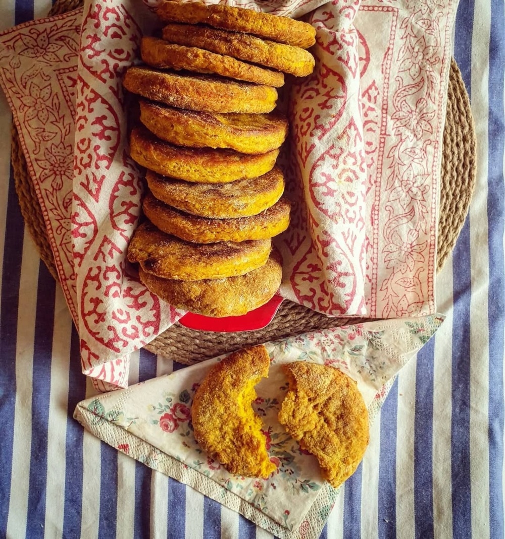 La receta lleva zapallo cocido, harina (integral, blanca o de avena), sal, polvo de hornear y aceite de oliva. Estos ingredientes los mezcla para formar una masa homogénea, que estira y luego corta con un molde antes de pasarlas al horno.