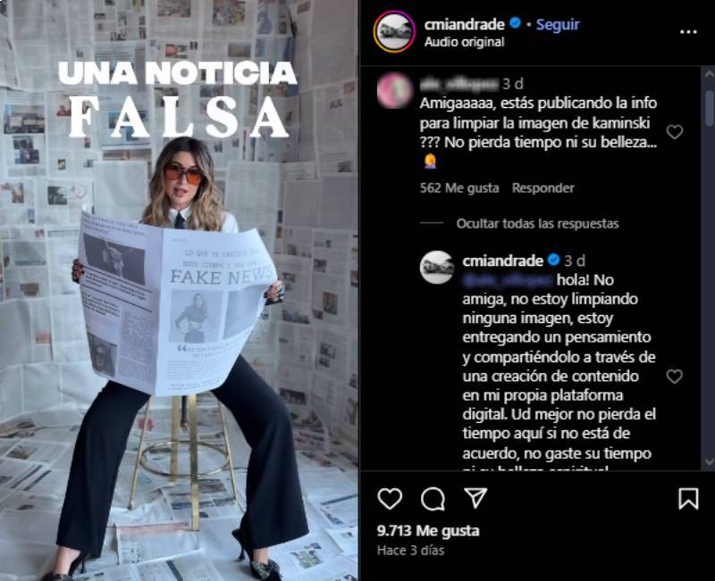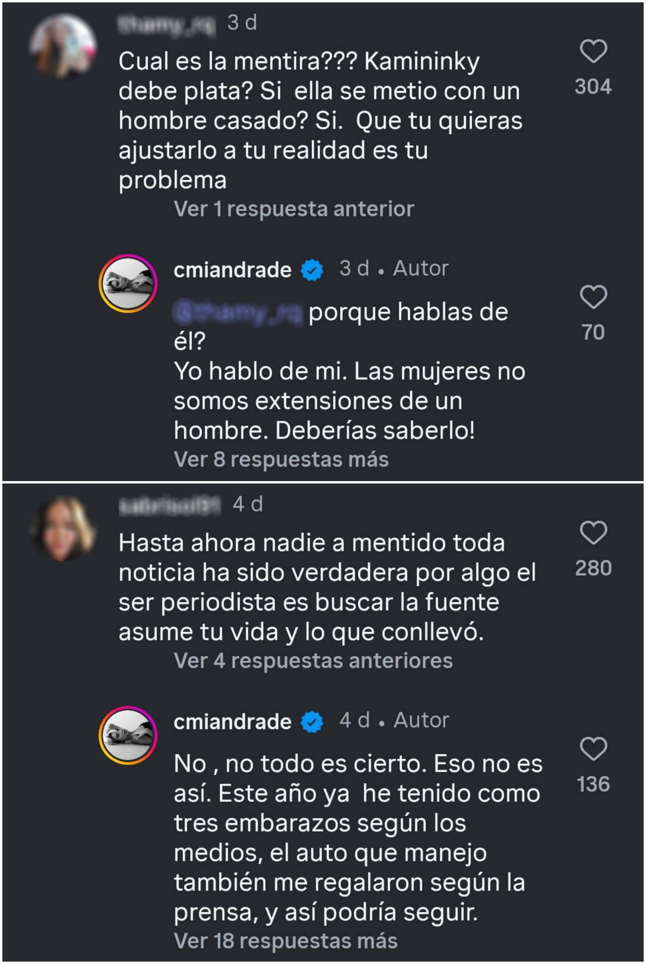 Otros usuarios se sumaron con críticas como: “¿Cuál es la mentira? ¿Kaminski debe plata? Sí. ¿Ella se metió con un hombre casado? Sí”, y “hasta ahora nadie ha mentido, toda noticia ha sido verdadera”.