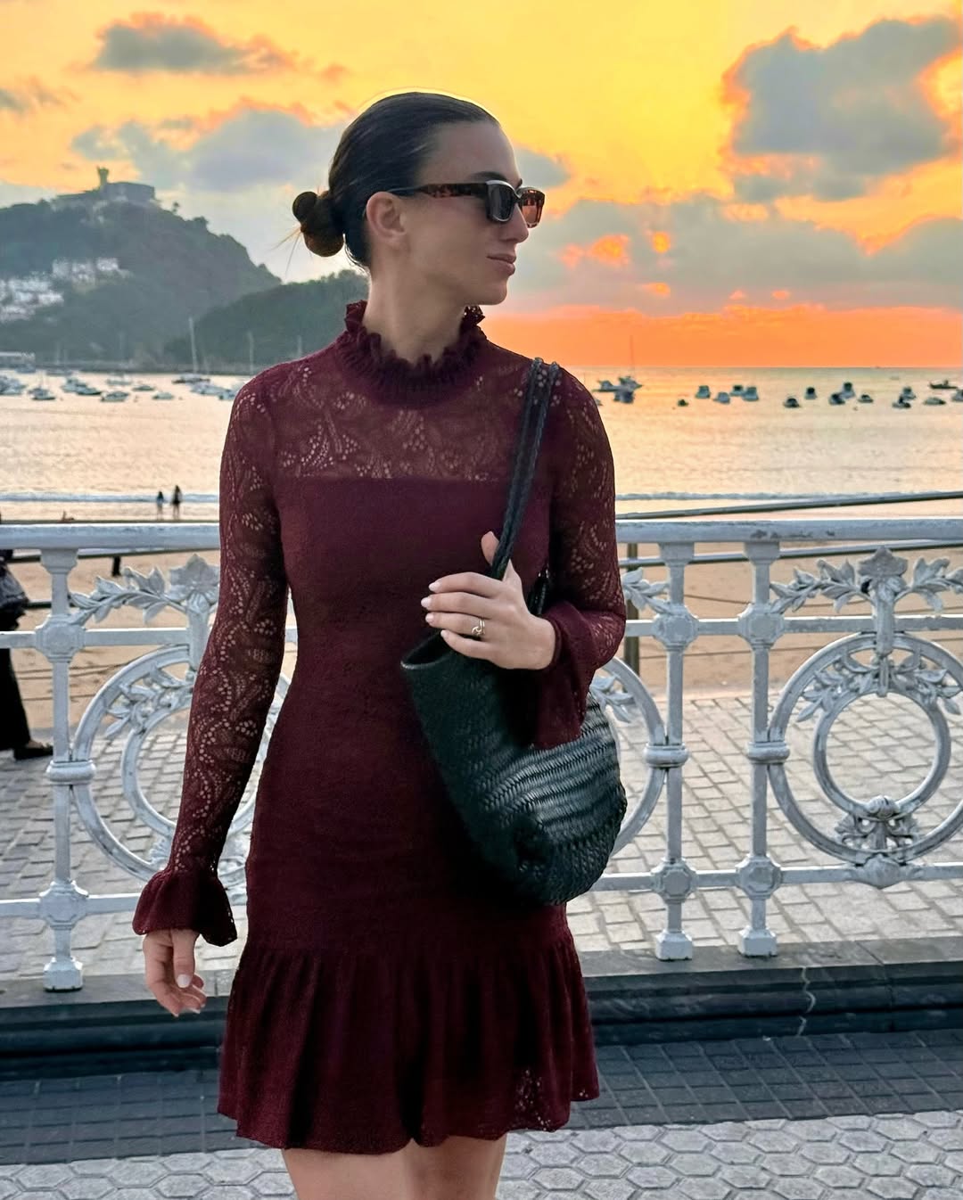 Al ritmo de la música de Gipsy Kings, Tita Ureta regaló un tour por sitios icónicos de San Sebastián (Donostia). Su vestido corto en un color burdeos se ganó los elogios de sus fans.