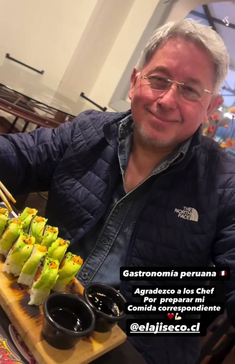 En sus historias de Instagram, "Luli", de 37 años, no dudó en capturar los mejores momentos de la velada. En una imagen, el cumpleañero lució sonriente mientras disfrutaba de una colorida tabla de sushi.