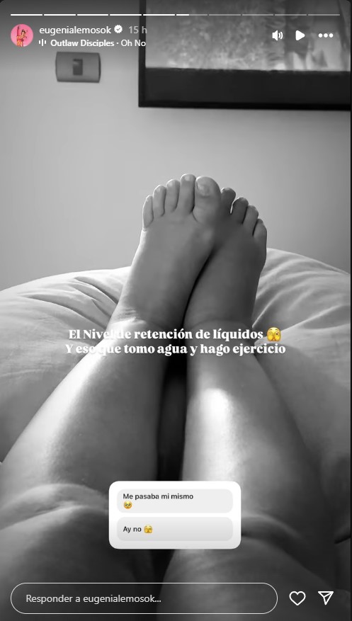 "El nivel de retención de líquidos y eso que tomo agua y hago ejercicios", explicó la comunicadora y les preguntó a sus seguidoras si a ella les pasaba lo mismo.