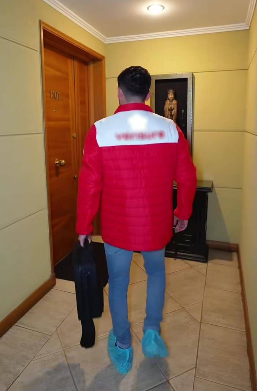 En el video de Raquel Argandoña un trabajador de la empresa entra a su hogar usando una funda desechable sobre sus zapatos, lo que despertó la curiosidad de sus fans.